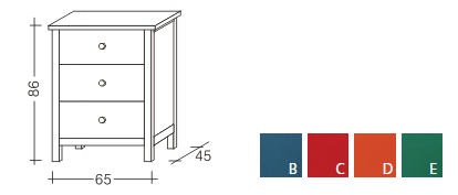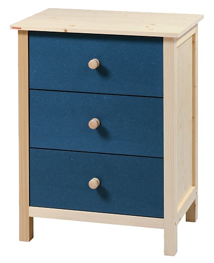 Dřevěná komoda, kombinace dřeva a probarvené MDF desky. 4 barevné varianty. Tato řada nábytku je vhodná především do studentských a dětských pokojů.