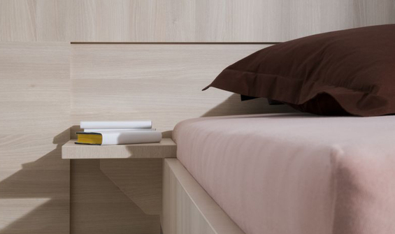 posteli a dotváří tak design lůžka. Závěsnému nočnímu stolku dá přednost ten zákazník, který preferuje lehkost a jednoduchost tvaru.