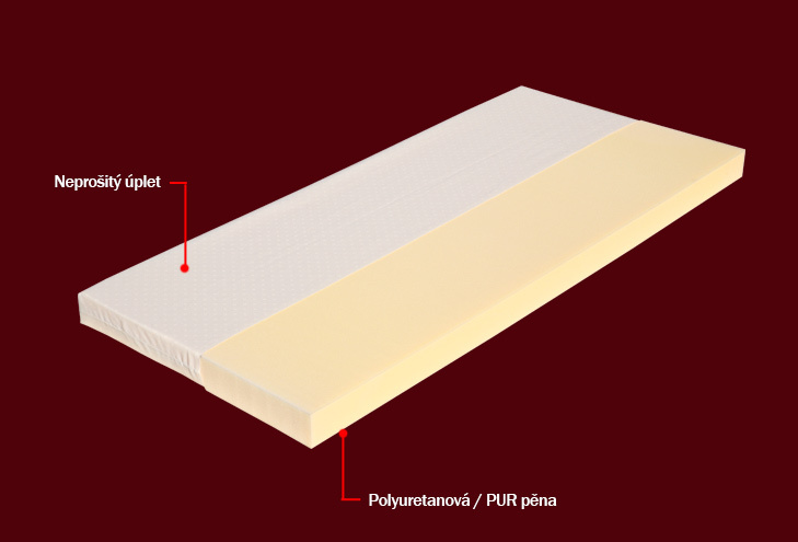 PUR, která zajišťuje celkové vyztužení matrace.Vrchní