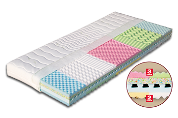 tvoří kombinace polyuretanových a viscoelastických pěn různých tuhostí,