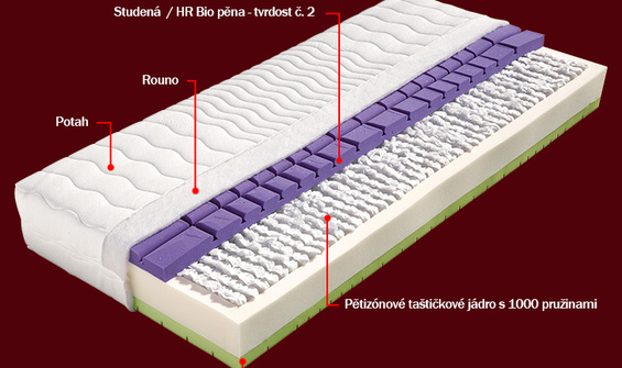 Jedná se o luxusní matraci s dvojí tuhostí a vynikajícími ortopedickými