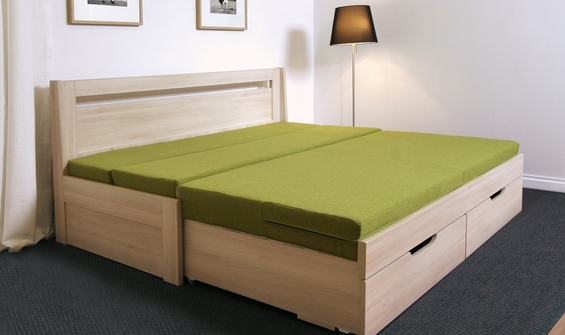Rozkládací postel Tandem Klasik je vhodná na každodenní spaní do malých interiérů. Součástí je rozkládací laťový rošt o nostnosti 2*120kg a úložný prostor. Vyrábí se z přírodního bukového dřeva s možností moření dle nabídky, případně v levnější laminové verzi s výběrem dekoru dle aktuální nabídky. Šířka lehací plochy 80–160cm, 90-180cm, délka 200cm. U postele můžete také volit rovné nebo zaoblené rohy čel - rovná čela jsou ideální do moderních prostor zařízených v rovných liniích, zakulacená čela jsou praktickou volbou zejména do dětských pokojů.